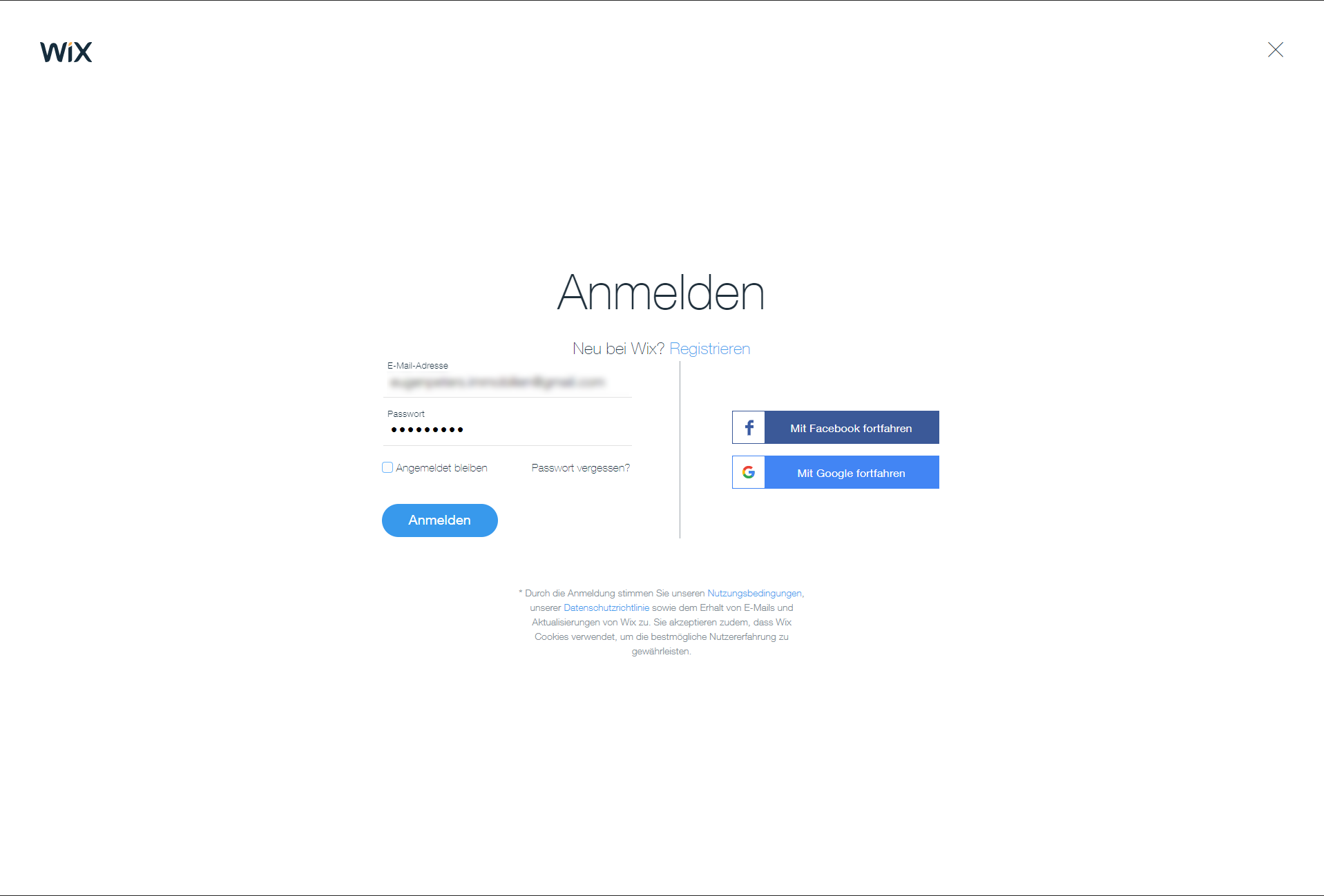 Anmelden im WIX Account