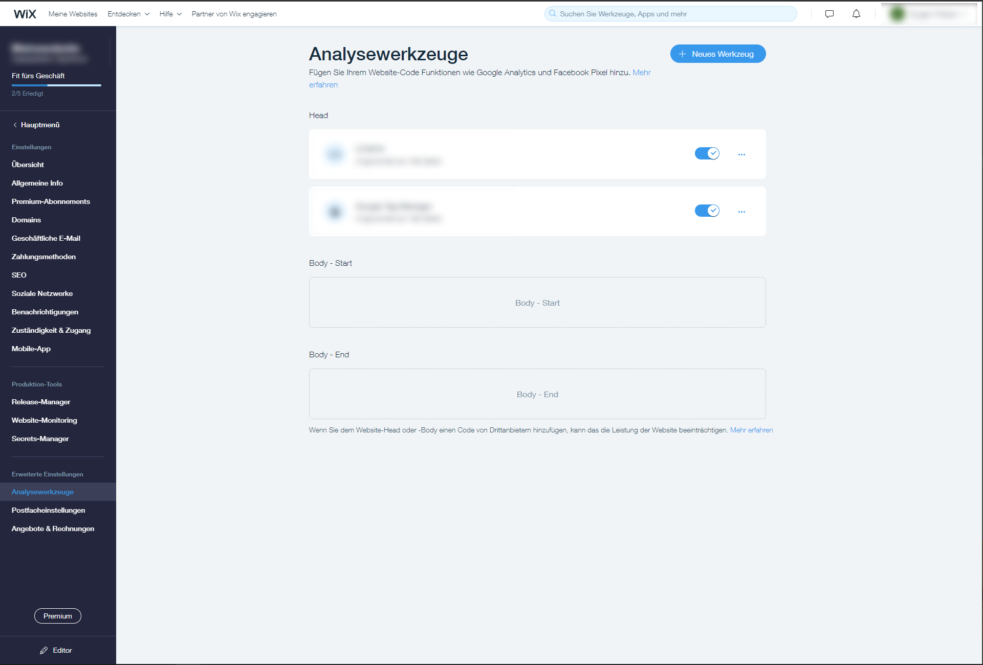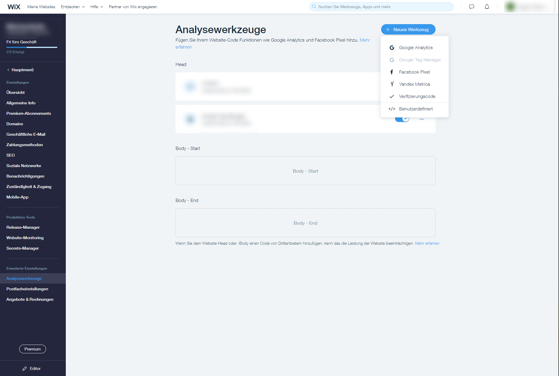 In der Übersicht für die Einstellungen öffnen Sie im Bereich der "Erweiterten Einstellungen" den Punkt "Analysewerkzeuge".